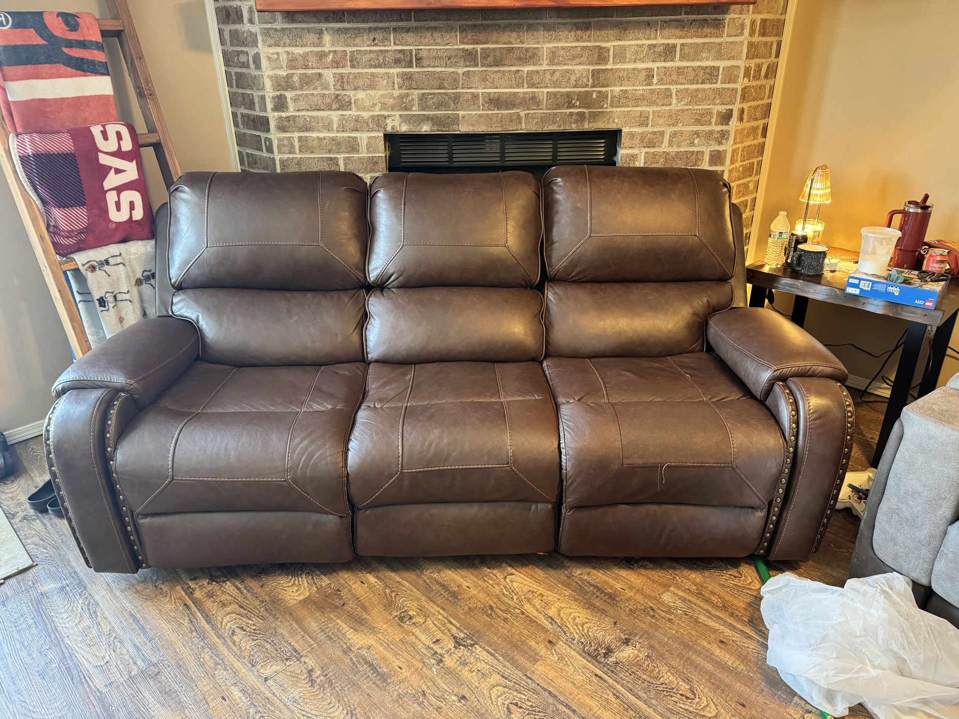 Leather reclining couch set