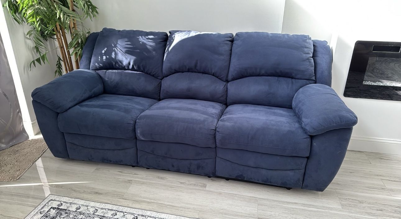Gorgeous Blue Microfiber Reclining Like New Couch