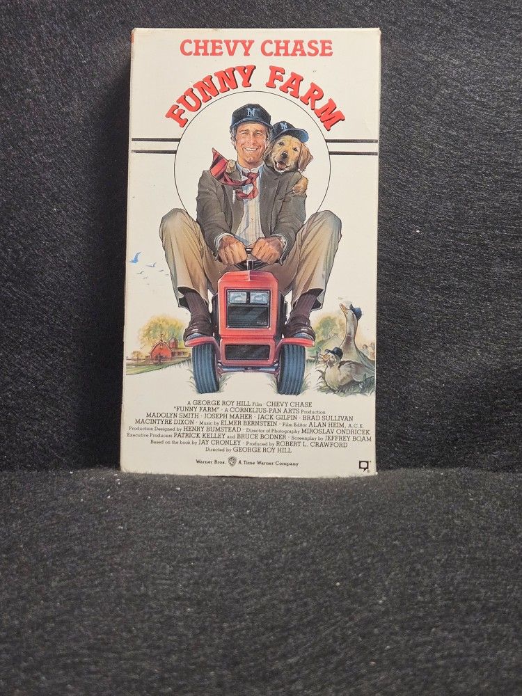 The funny farm was Chevy Chase. Chevy Chase plays a New York sports writer who has had enough of the city and move to the country to find a better life. And what he finds is more than he can handle this is hilarious comedy about a person that is trying to find his place in the world. It's the original release and is in VHS format. Special running through January 31st by any five of my movies and get $5 off your purchase