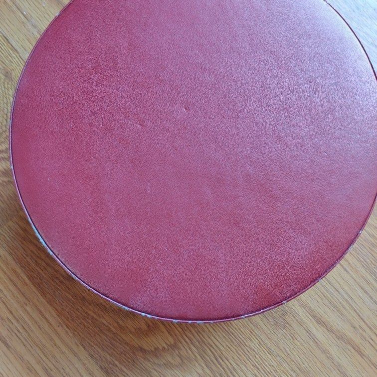 This faux leather (Vinyl) round travel and storage box is an anti tarnish and organizer for your jewelry. It measures 8 1\4" in diameter and 3 1/4" Deep. It has several dividing pocket areas made of a sturdy soft cloth. The box shows some signs of wear around outer edges (please See photos). A very nice mini suitcase for your jewelry and accessories.