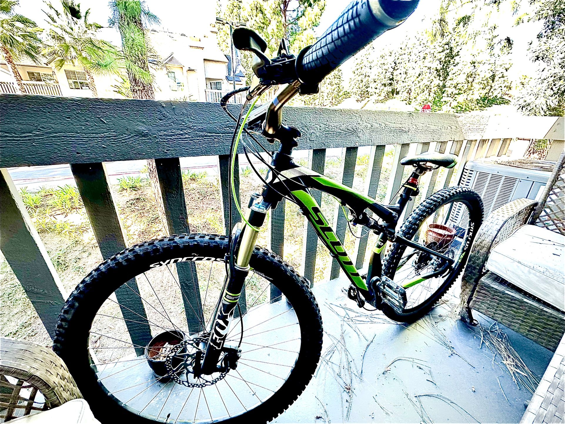 Full Suspension Mountain bike, adjustable seat, with Fox shocks & Shimano breaks. It’s in good condition great for beginners.