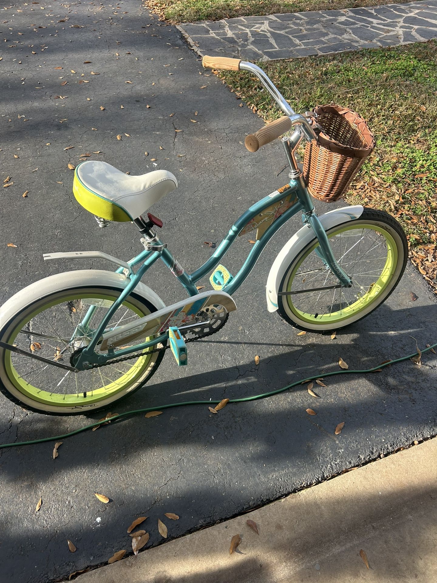 Limited edition Beach Cruiser has been used 5 times. The limited edition kids' Huffy Panama Jack bicycle comes in a 20-inch size, suitable for ages 5-9. Here are some details about the Huffy Panama Jack 20-inch Kids' Cruiser Bike: Best For: Young riders aged 5-9 looking for a stylish and comfortable cruiser bike. Highlights: Features a Perfect Fit Frame for comfort, rear coaster brakes for easy stopping, adjustable seat, splash-resistant fenders, and a wicker basket. It also boasts decorative chainguards, pinstriped tires, and yellow wheel rims for a stylish look.