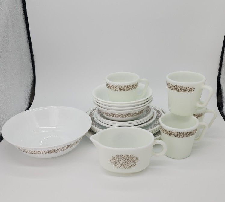 Vintage Corelle Corning Woodland Brown 24-Pc W/Serving Bowl & Gravy Boat