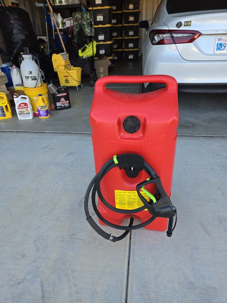 Flo n' Go Duramax Gas Caddy, 14-Gallon, Poly, Model# 06792 with Full Tank of Gas included with stabilizer. flo n' go duramax gas caddy +10 The Scepter Flo n' Go Duramax 14-gallon (53 L) gas caddy is a durable, portable fuel container designed for easy, spill-free refueling of boats, ATVs, and lawn equipment. It features a 10-foot hose with a pump handle, 6-inch wheels for mobility, and a flow rate of up to 2 gallons per minute. The red tank is ideal for gasoline, while yellow models are available for diesel. This video provides a detailed review of the Scepter Flo n' Go Duramax 14-gallon gas caddy: Related video thumbnail 36s Turf Nerds: A Lawn Care Podcast YouTube • May 3, 2022 Key Features and Benefits: Capacity: 14 gallons (53 liters), ideal for farm, cottage, or commercial use. Pump/Siphon Mechanism: Features a patented Flo n' Go Maxflo siphon/pump handle that stops and restarts flow to prevent spills and overfills. Mobility: Equipped with 6-inch heavy-duty wheels for easy transport over rough terrain. Construction: Made of high-density polyethylene, which is durable, corrosion-resistant, and dent-resistant. Hose: Includes a 10-foot hose with a bolt-on hanger for easy storage. Versatility: Suitable for gas-powered tools, tractors, generators, snowmobiles, and more. Flow Rate: Approximately 2 gallons per minute in siphon mode. Models: Standard Model (06792): Red color for gasoline.