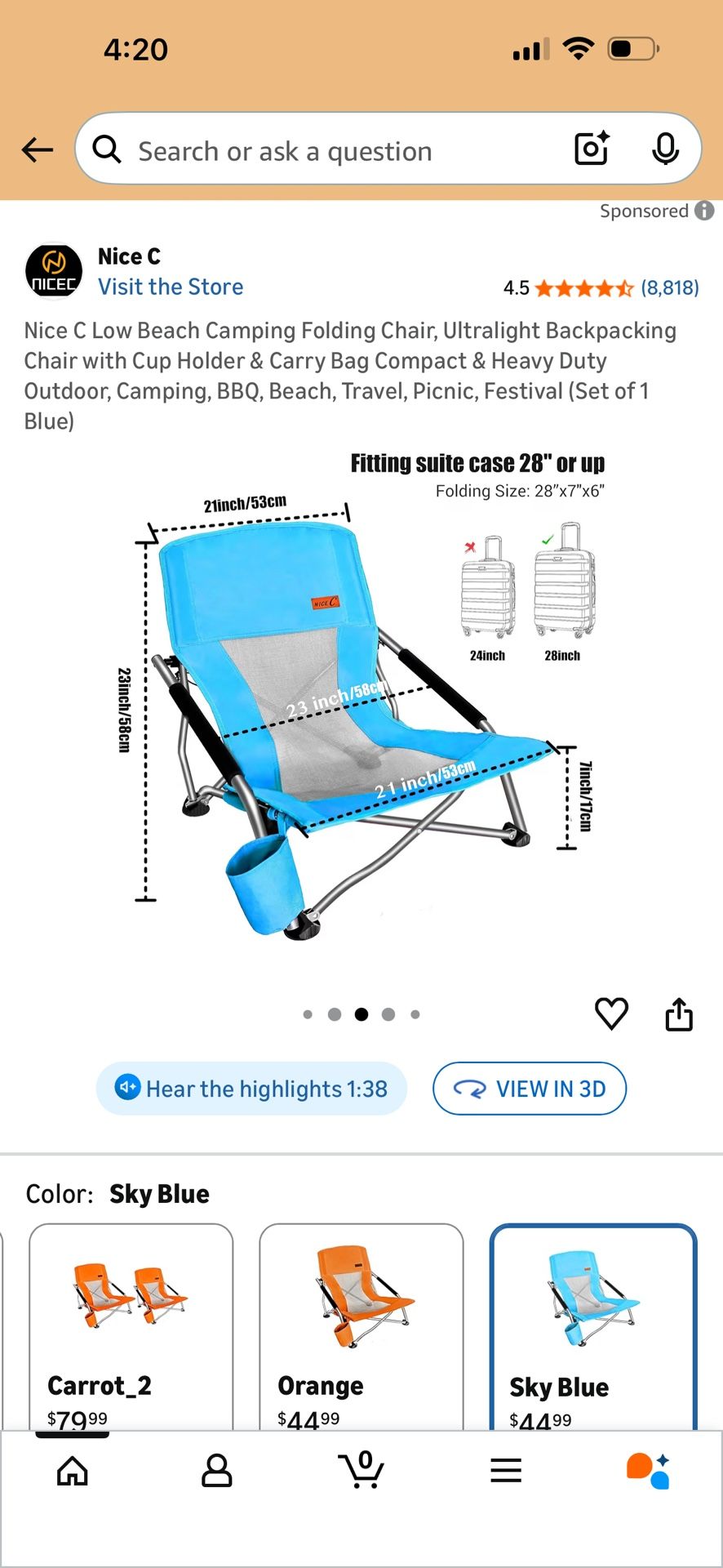 Brand new low beach camping chairs. Very lightweight and portable, easy to carry. Perfect for beach, camping, picnic, BBQ, travel, and outdoor activities. • Built-in cup holder • Folding design, easy to store • Strong and durable frame • Comfortable low seating We have 50 brand new chairs in stock
