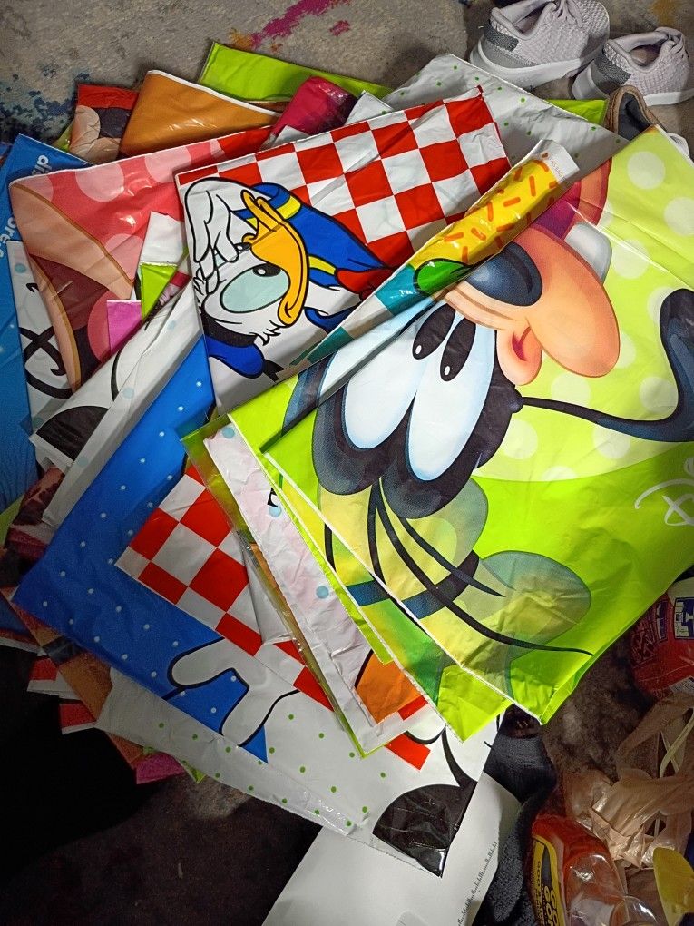 There are 29 bags in various sizes all came from The Greenbrier Disney store she loved her Disney store the state from 93 up to the early 2000s various sizes there are no holes in any of them there are Mickey mouse Donald duck there's some Goofy there are some that says the Disney store with Donald duck some that said the Disney store with Mickey I have one that has stitch and monsters Inc and Eeyore there's a Tinkerbell the different ones of Mickey and Donald duck again then I have one from toy story and others all various sizes all in good condition $3 each or can make an offer for the whole lot available at 2946 South military highway Chesapeake Taylors variety store hours 10 to 5:00 ish have others to post check cross posted