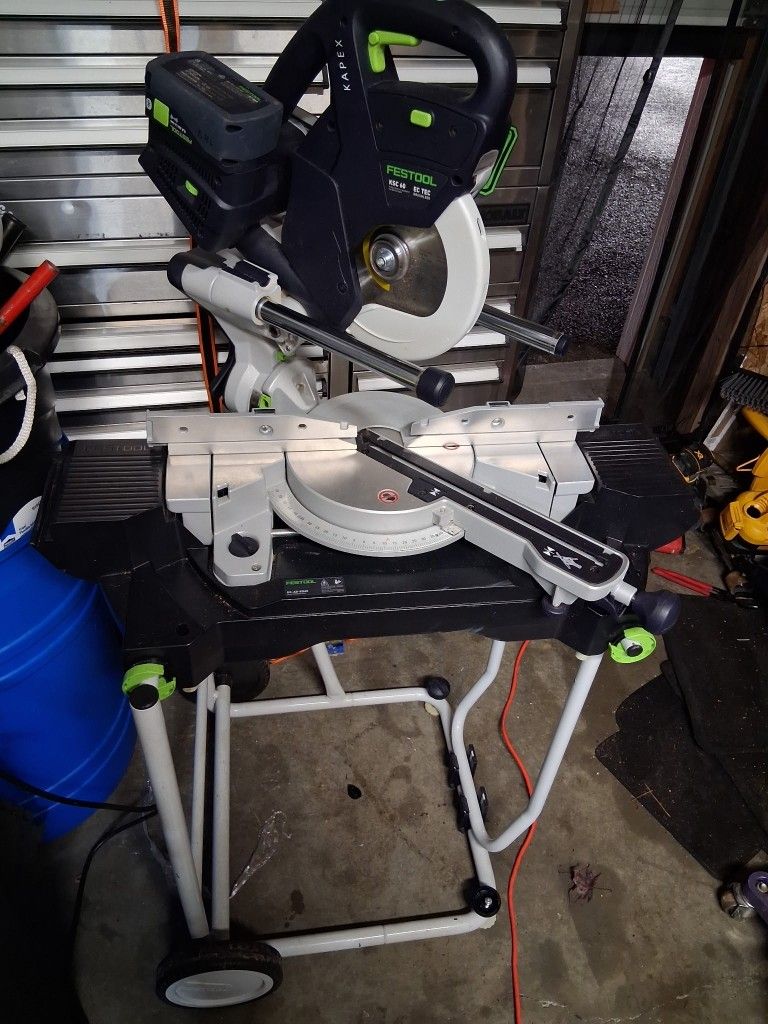 1300 brand new in store selling so cheap because I have lost the charger. But I have seen them online for 10 or 15 bucks. Comes with saw stand/ cart and only one battery