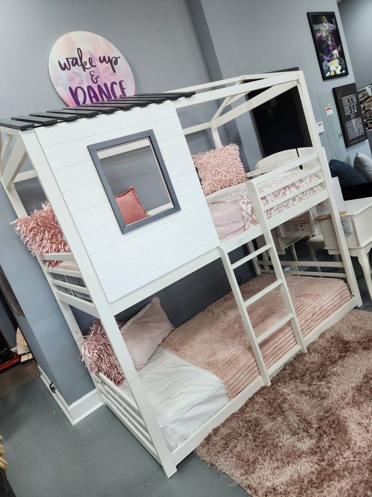Twin House Bunk Bed Matteress Included