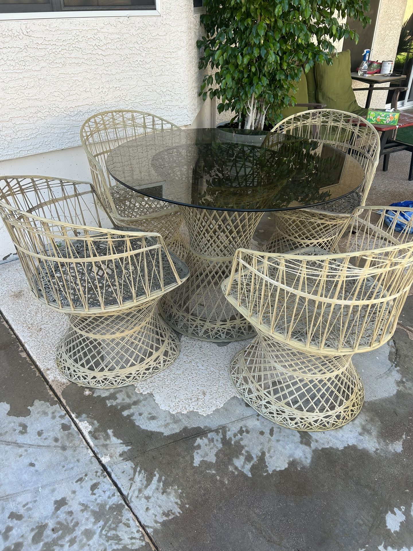 Beautiful Piece Glass Wooden Steal wicker chairs Table Set