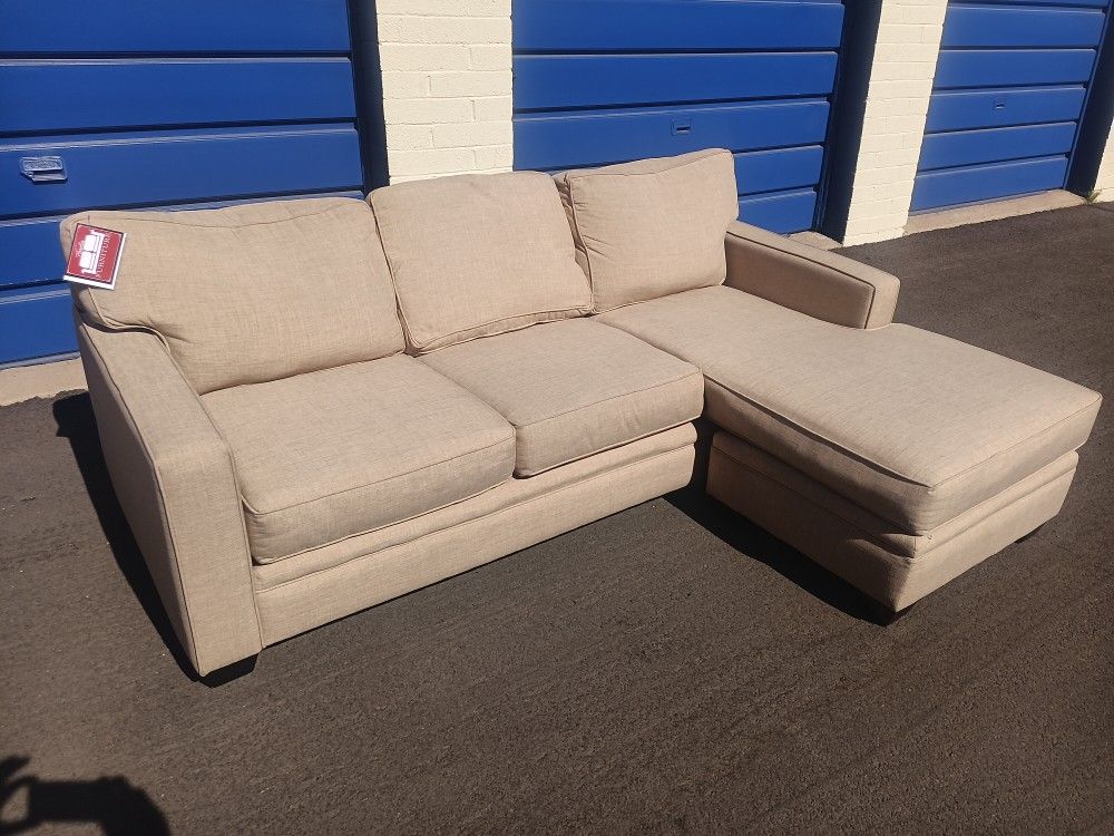 We have a new 2-piece sectional sofa by Jonathan Louis for sale. The sectional comes with a reversible chaise to where it can be moved to the left or right side. Is it a great Buy for anybody looking for Quality Furniture for Less. We offer six months same as cash financing and free same-day delivery message for details size is listed below. Model Number: 35090a Size 7ft 8in wide by 5ft 8in deep