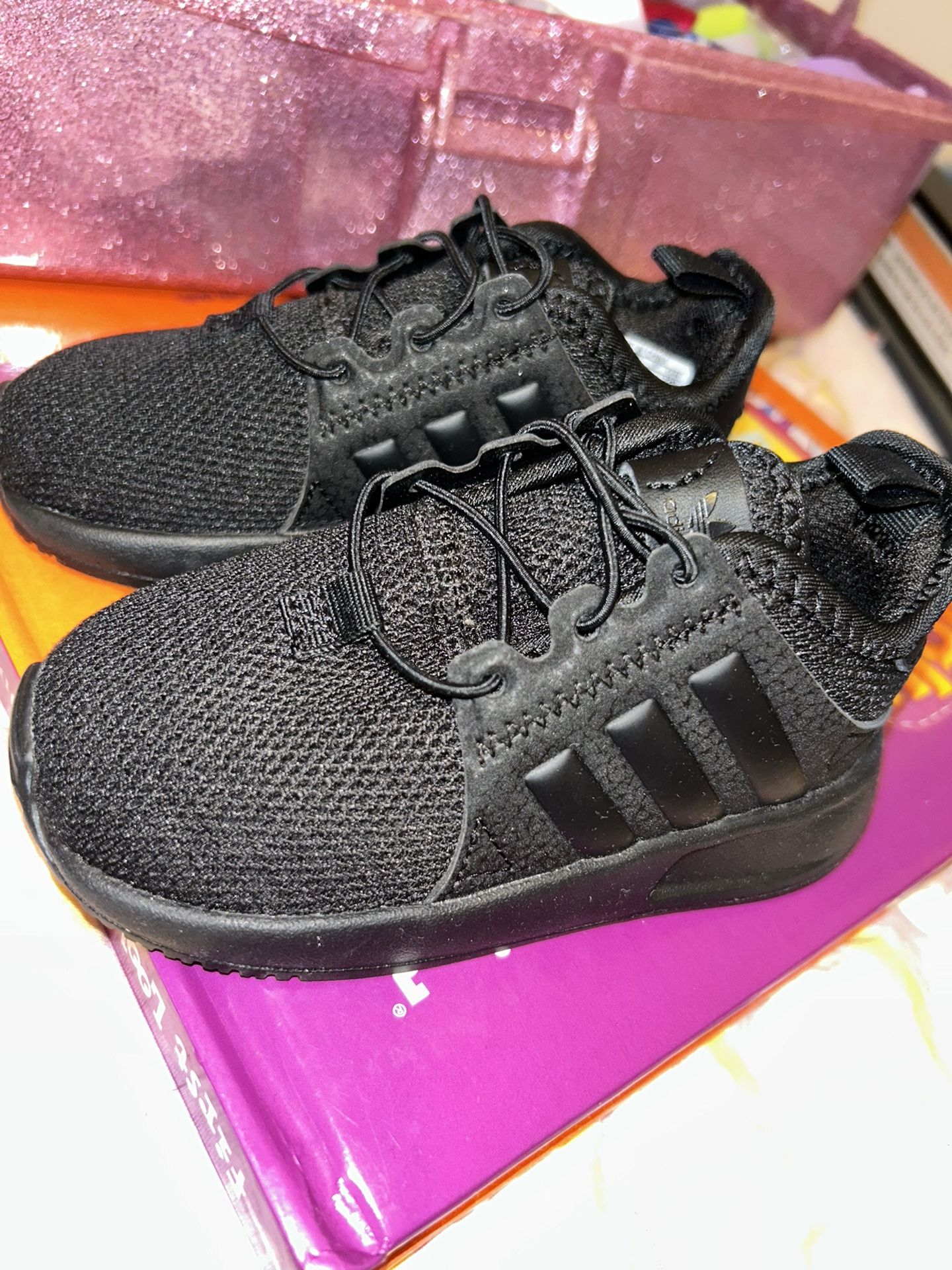 Size 5.5 toddler Adidas gender neutral all black only worn once, no box and comes with extra brand new laces