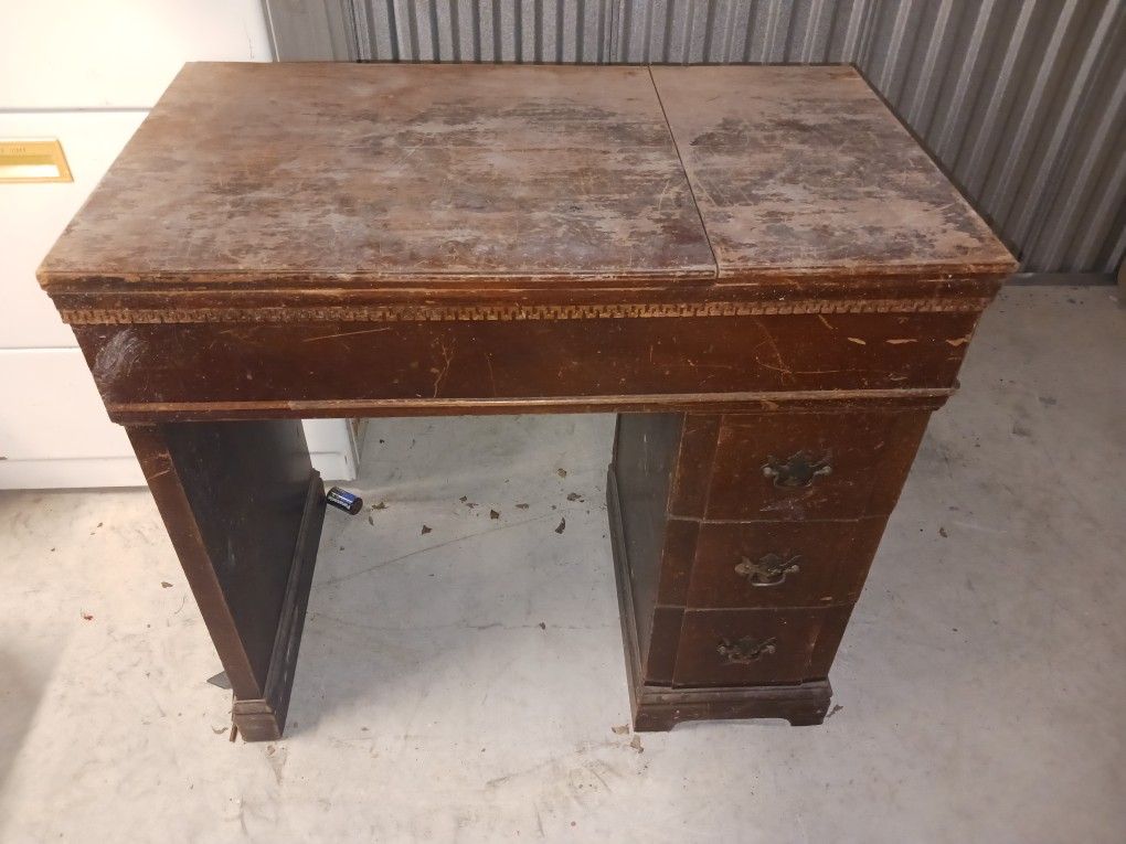 Antique Sowing Machine With Cabinet Dresser