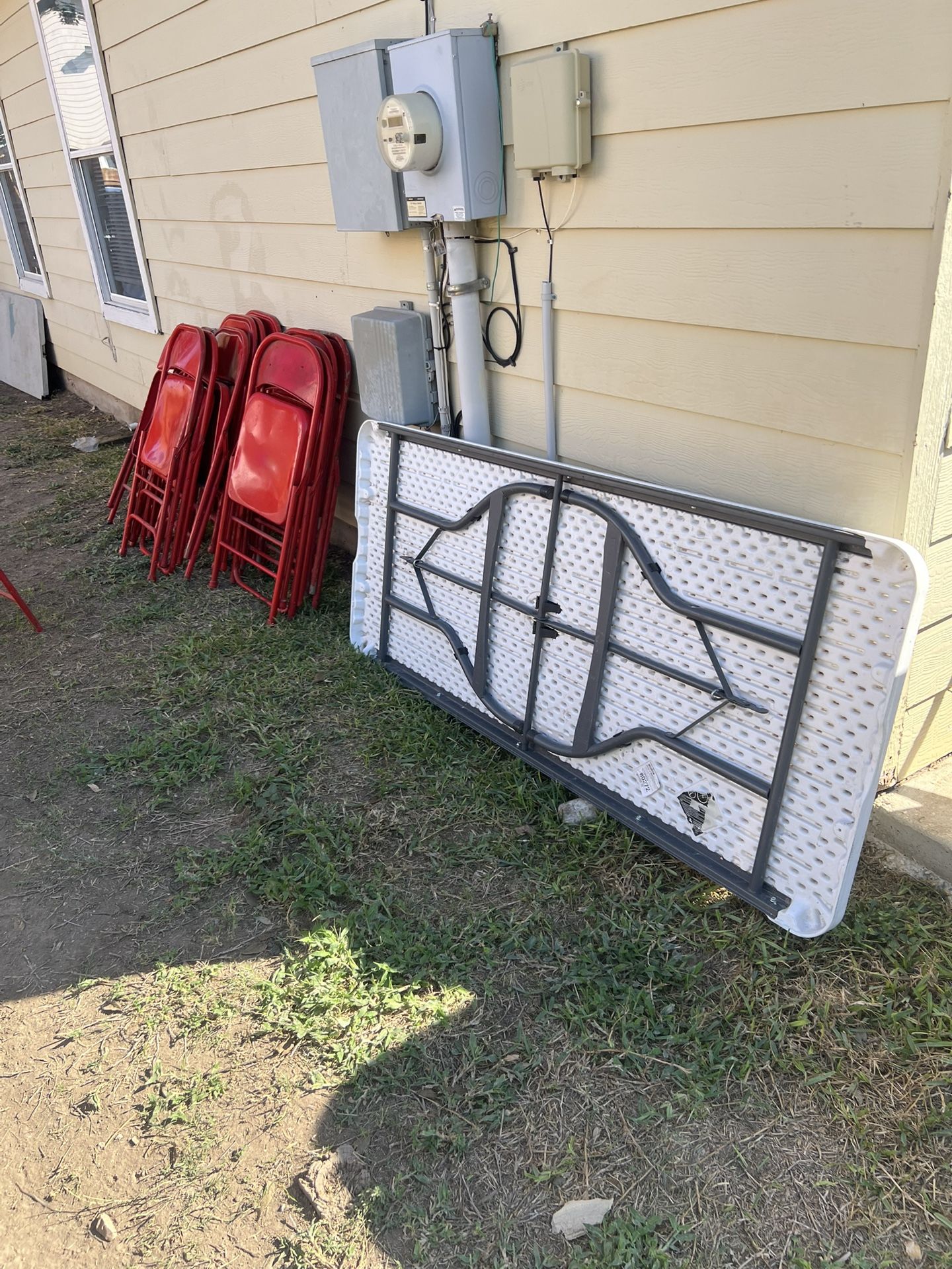 I have these tables and chairs $1 per chair, $10 per table per day There are about 40 total chairs and 3-4 tables They are perfect for having extra seating for a get together or small events Please feel free to ask any question