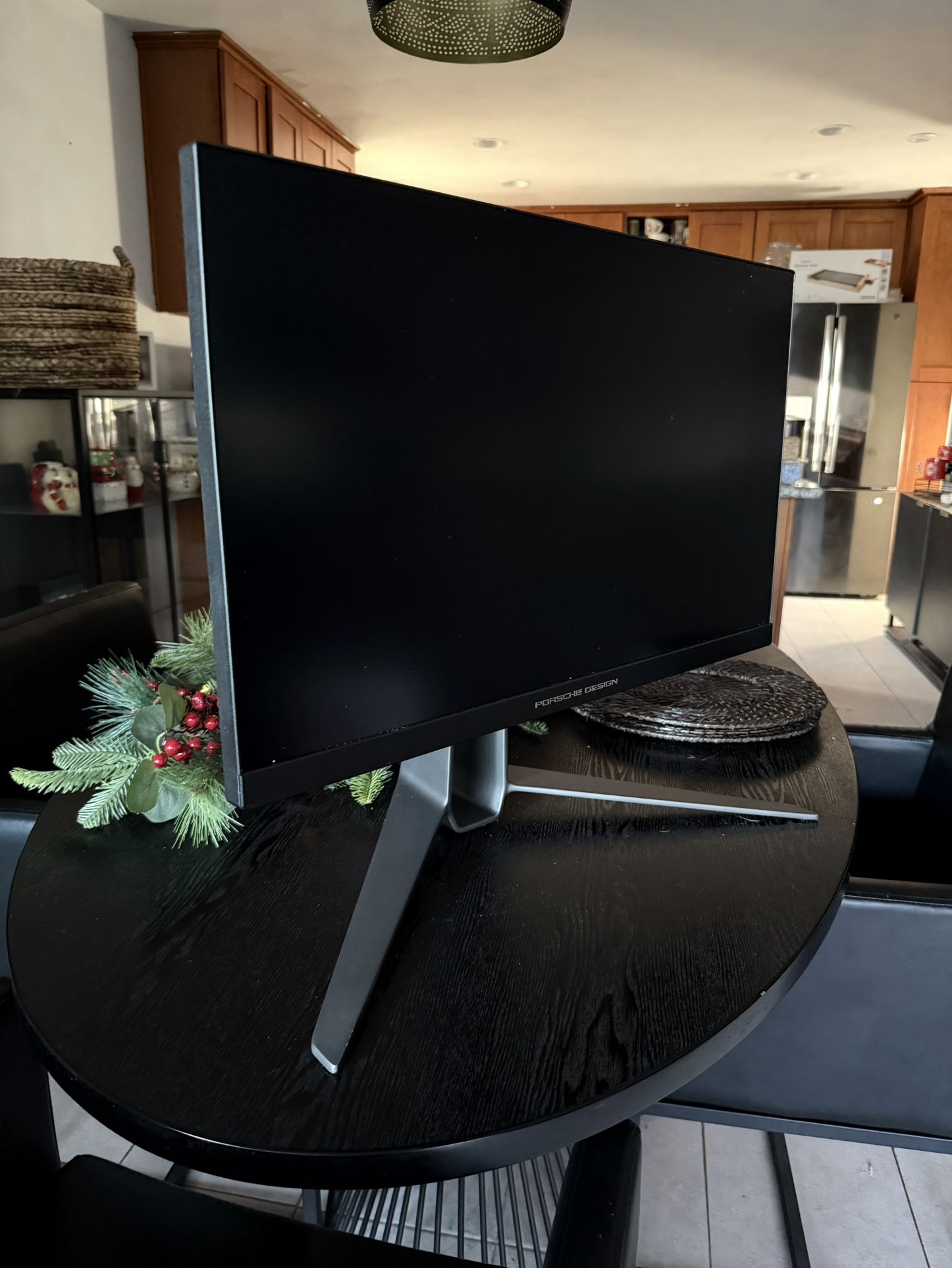 Gorgeous limited edition Porsche Design AOC Agon Pro PD27S gaming monitor. It is a QHD IPS 170Hz with a gorgeous gunmetal stand that mimics the iconic Porsche wheels. Don’t get those cheap plastic monitors with horrible builds.