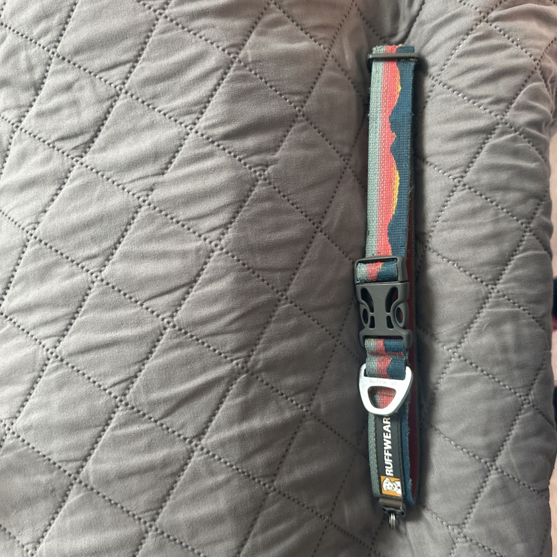 Ruffwear reflective crag collar. Well loved still functional. Washable with tag attachment. 20-26 inches.