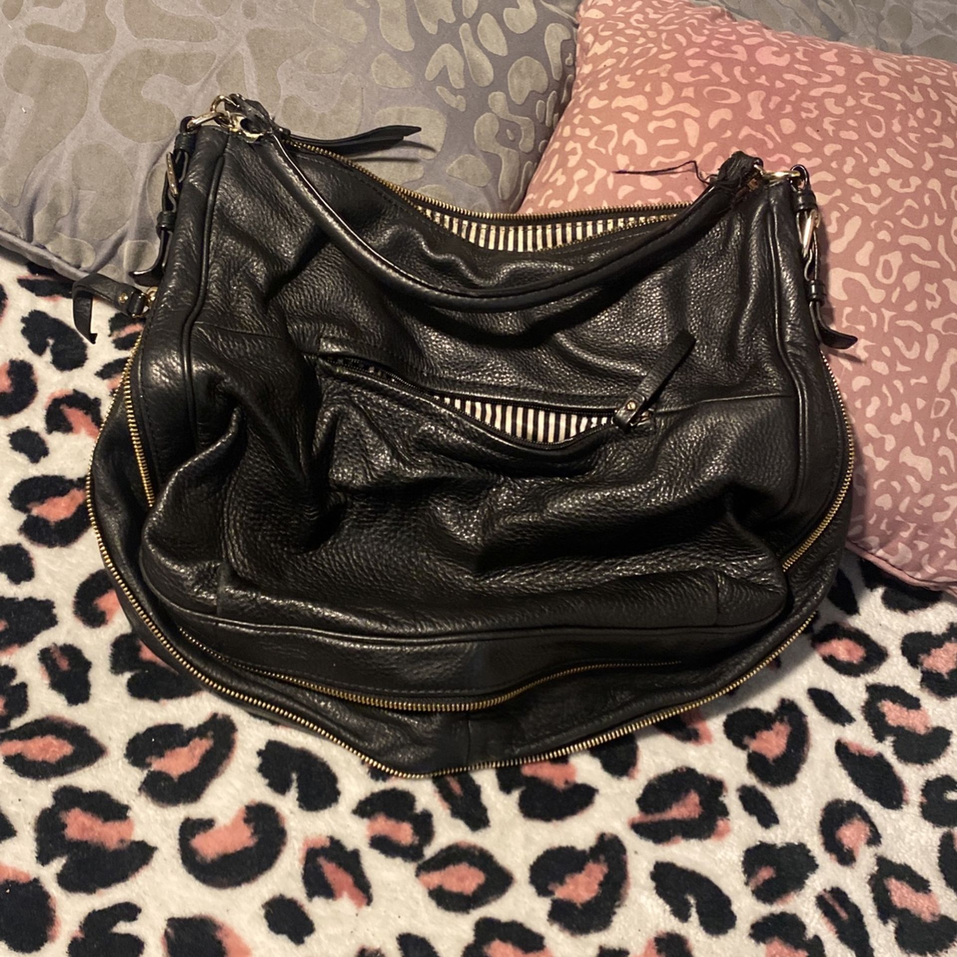 Also lots of zippers and no name some wear on the handle and inside no cracks in the leather medium size and super cute