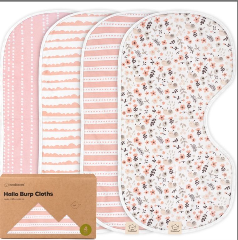 KeaBabies 4-Pack Baby Burp Cloths Baby Girl, Boy - Organic Cotton Burp Cloth, Extra Large, Absorbent