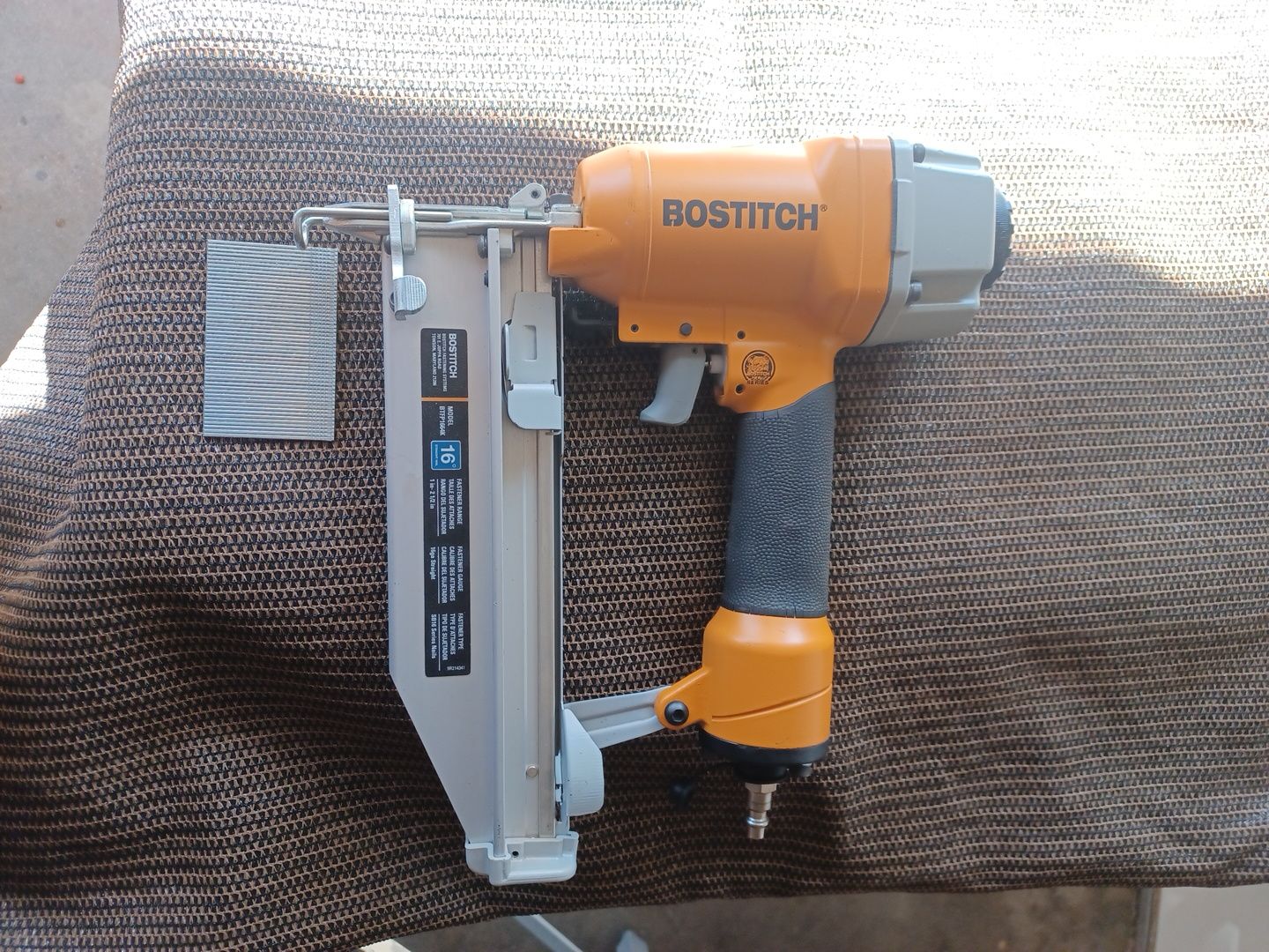 Bostitch 16 GA. Model Btfp1664k. 1 inch to 2 1/2 inch straight . New condition with approx. 200 nails, 2 1/2 inch.