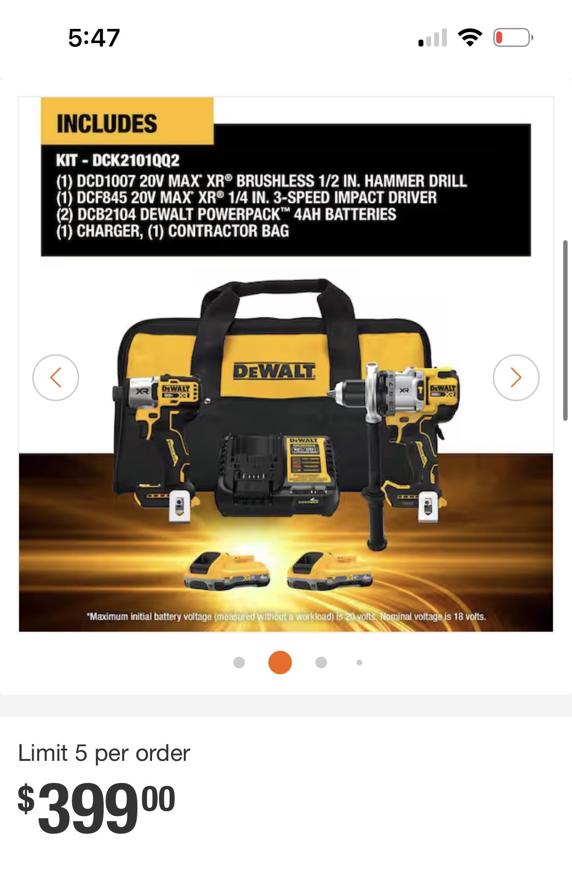 20V MAX Lithium-Ion Cordless 2-Tool Combo Kit with (2) 4.0 Ah Batteries, Charger and Kit Bag Juego Combinado de taladro Percutor/Destornillador de impacto combo (2) 4.0 Ah Baterías cargandor y la bolsa