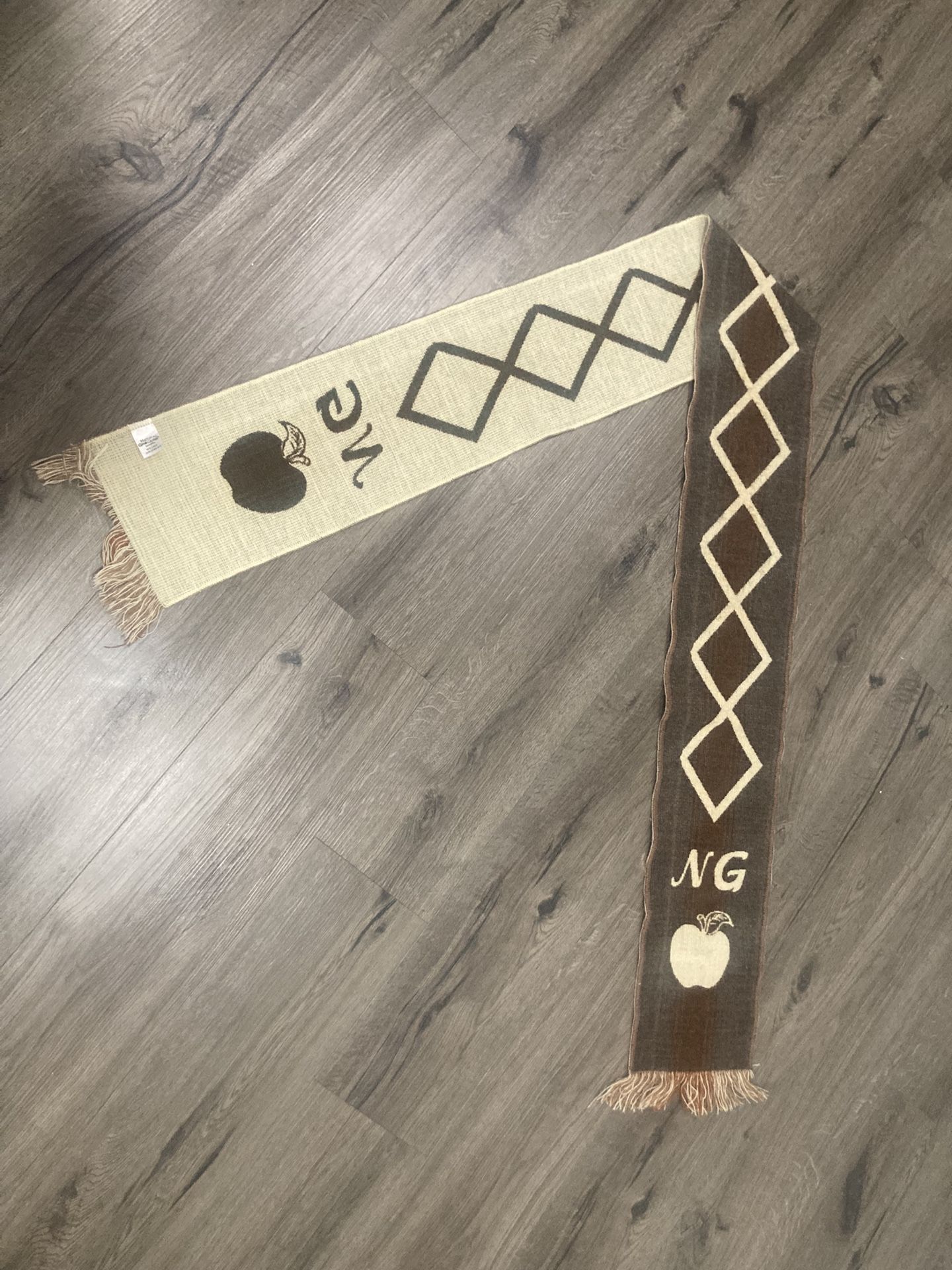 Natural Grocers Apple Logo Scarf 2 Tone Brown & Cream Fringe Scarves