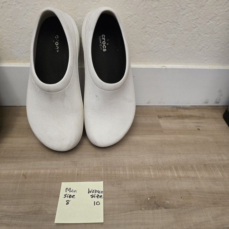 Unisex Crocs shoes in white. Great shoes for nursing students & nurses. Non-Slip Waterproof. Sizes Men 8, Women 10 $20