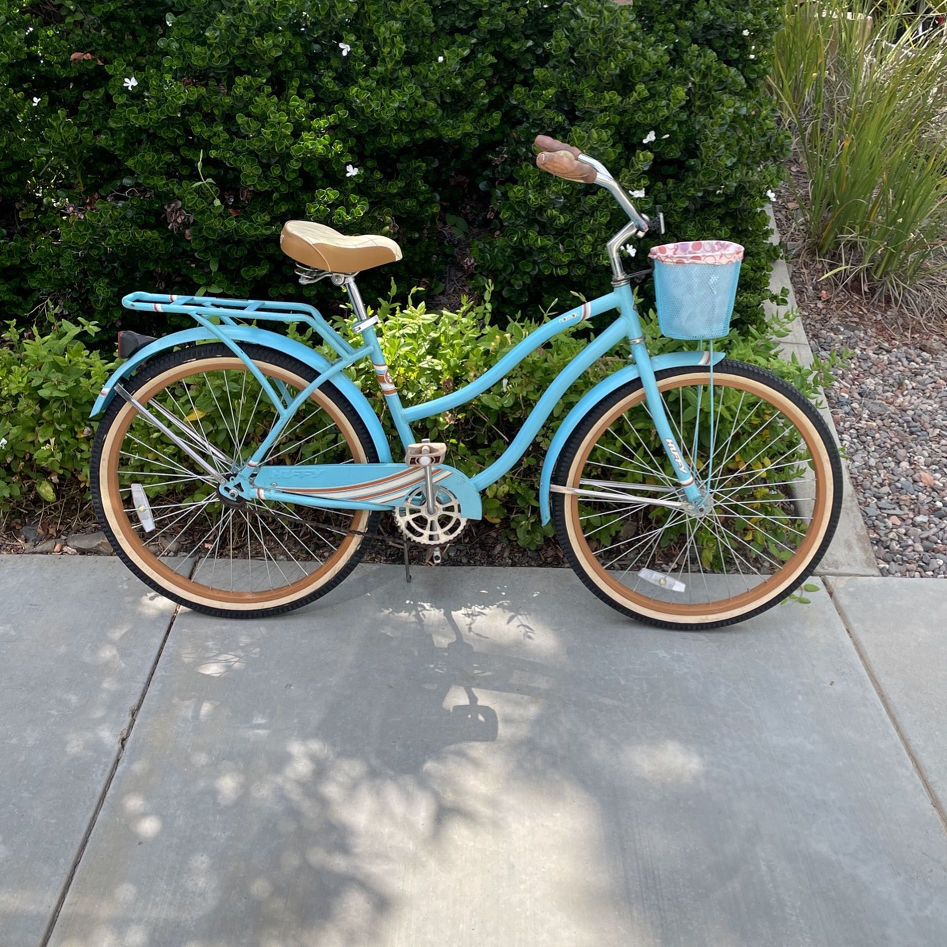 26” huffy Nassau ladies light blue Beach Cruiser with Basket and rear rack Ready to Ride will deliver for an additional $25