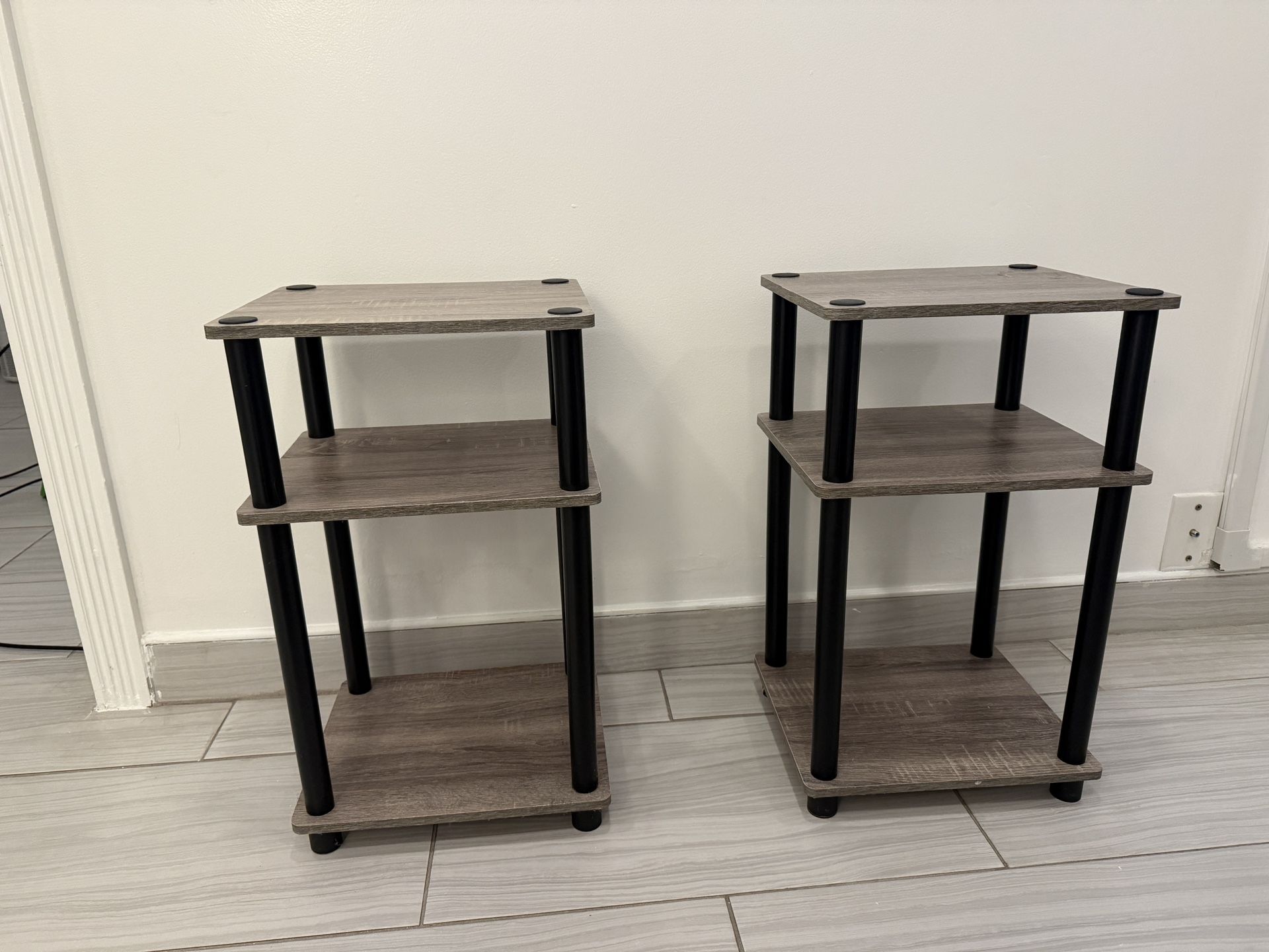 Very good condition, lightweight plastic, good nightstands for smaller spaces. Pick up in queens 12W x 13.5 L x 23H (Inches)