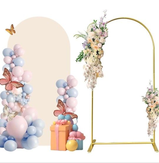 Metal Arch Backdrop Stand and Cover Set, 6.6FT Beige Reusable Spandex Fitted Backdrop Cover and Gold Wedding Arch Frame for Baby Shower, Birthday, Parties Decoration.