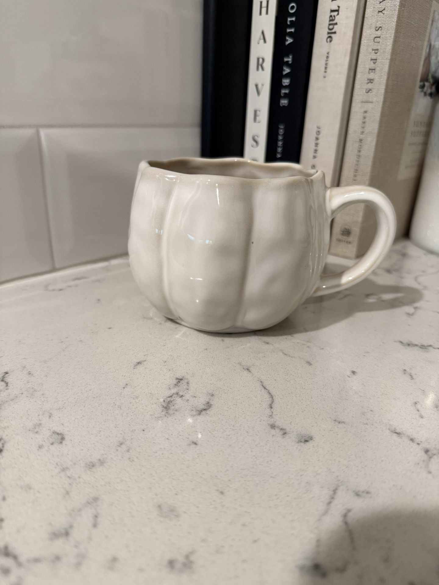 Price is FIRM! Please don’t ask if it’s available. If it’s still listed it’s available. Serious inquires only! Barley used. Discontinued mug from Williams Sonoma. 3 1/2" high. 21-oz. cap. Shaped like a harvest pumpkin, our charming mug is cast from durable stoneware and finished with a pristine white glaze. The textured mug has a slightly uneven rim and variations for organic appeal. Made of high-fired stoneware with a scratch-resistant glaze. Coordinates with the rest of our Pumpkin Figural collection. Microwavable and dishwasher safe.