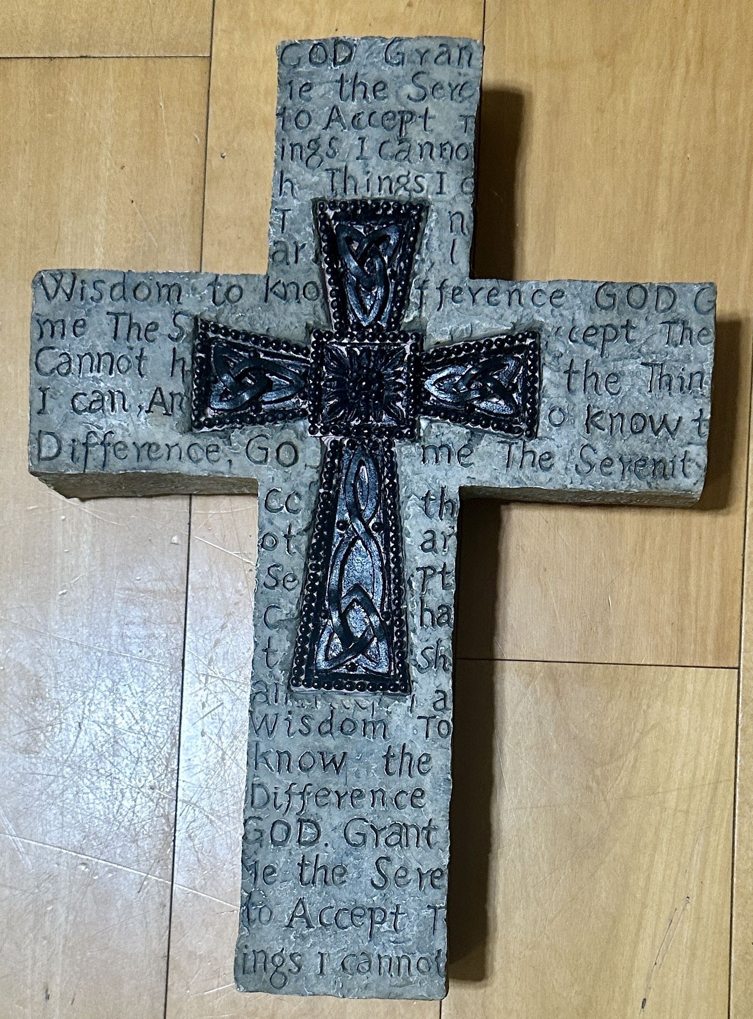Serenity Prayer Stone Cross with Stand.
