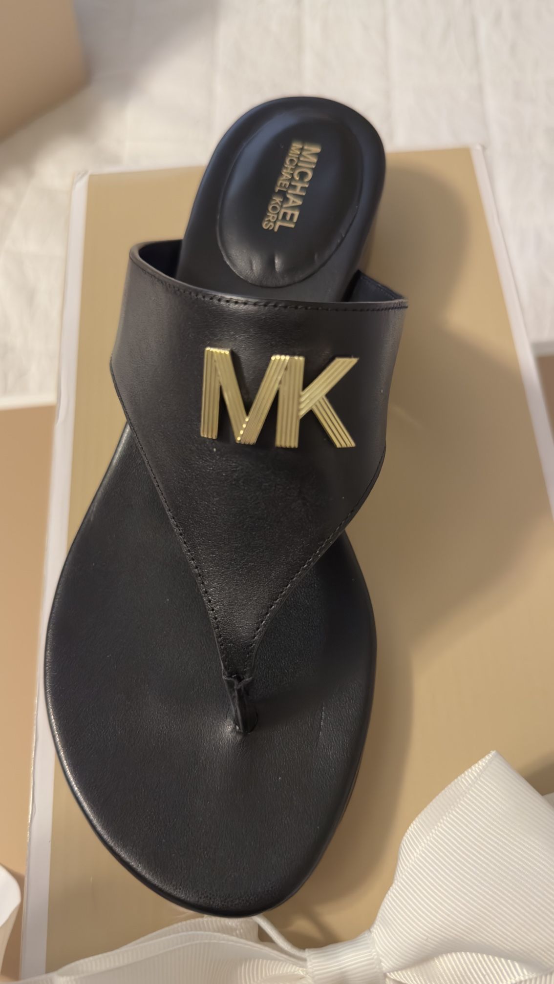 Michael Kors DEANNA Leather Logo Thong Sandal black color size 7 M New never wear in it’s own box