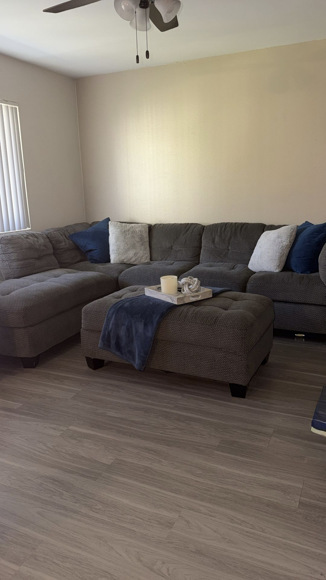 Used light grey couches with Ottoman Very well taken care of. No stains