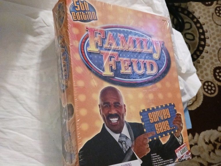 a board game that has never been used before. This complete game is perfect for families and groups of 3 or more players. The game is made by Endless Games and is the 5th edition of the popular Family Feud game. The game includes a variety of survey questions and is recommended for ages 10 and up. It was manufactured in the United States in 2013 and comes with a MPN of 09PR0615. So gather your family and friends to enjoy this fun and exciting game of Family Feud