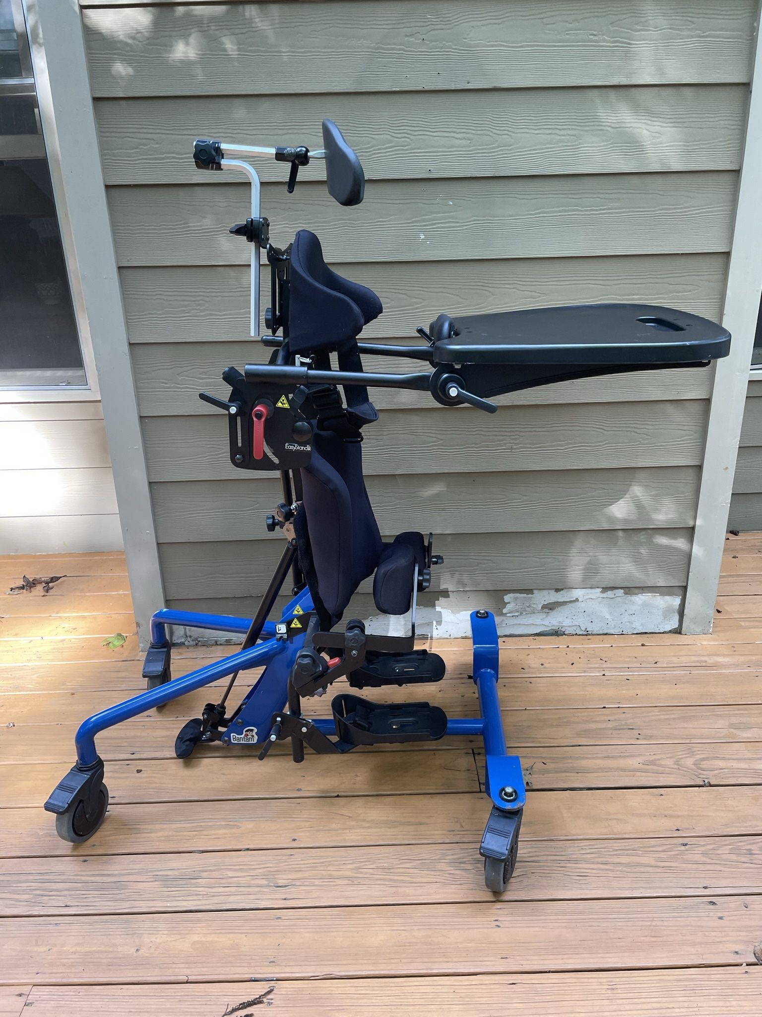 Approximate Height Range: 36”- 54” tall and up to 100 lbs. Seat Depth Range (from seat pivot) 11″-16″ Used. Good condition. Local pickup only Cumming The Bantam line of standers are the only sit to stand standers that can combine the option of supine positioning to create infinite positioning possibilities from 90-90 sitting, fully vertical standing, full supine lying and anywhere in between. No other standers can provide the amount of positioning that is possible with the EasyStand Bantam.