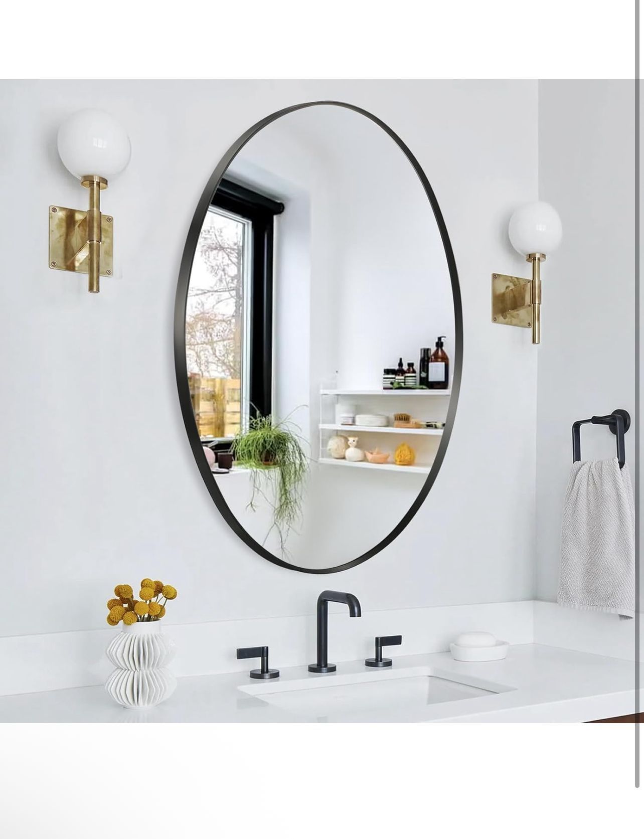 Oval Wall Mirror, 26"x38" Black Oval Vanity Mirror, Bathroom Mirror of Metal Frame, Home Decorative Wall Mounted Mirror for Bathroom, Living Room, Entryway, Vanity 4056 $70 42”x29”x3” 14lb