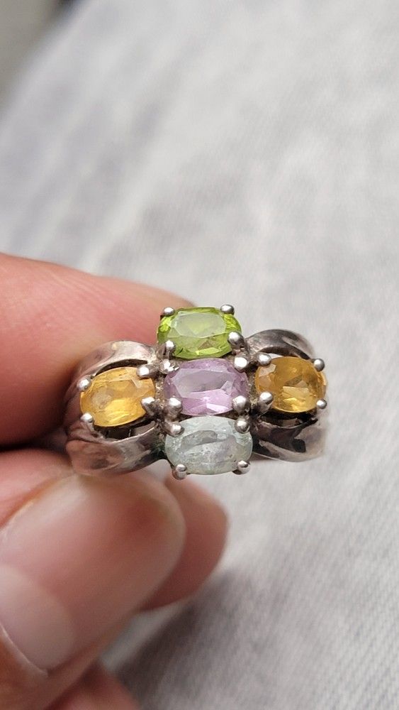 Vintage Ring With Amethyst, Citrine, Peridot, Aquamarine Set In Sterling Size 6