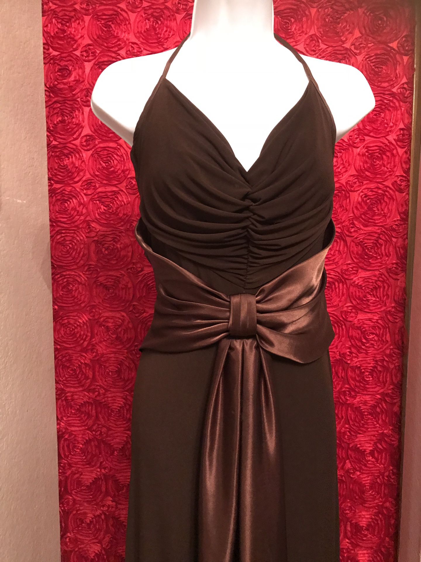 Chocolate brown halter top evening dress