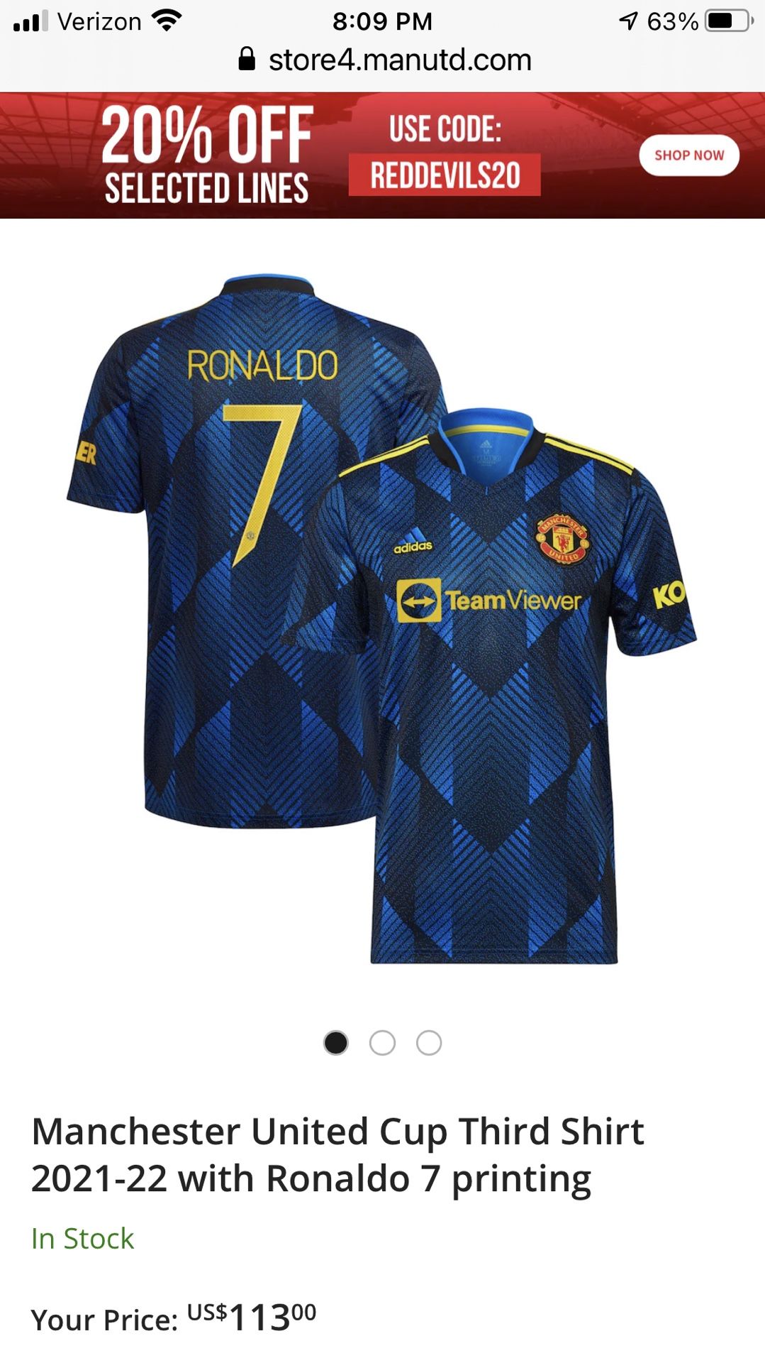 BARGAIN !! 100% ORIGINAL. Not a Cheap Copy. DIRECT FROM THE OFFICIAL MAN UTD STORE IN THE UK. MANCHESTER UNITED RONALDO AWAY STRIP MENS XXL Still in packaging, absolutely brand new. Cost $125 new originally . Accept $50 Bargain.