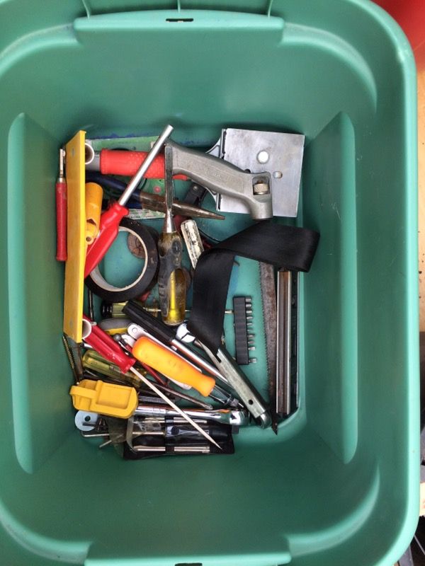 Jumper cables, vise clamps, ratchets, sockets, combo wrenches, pliers.....