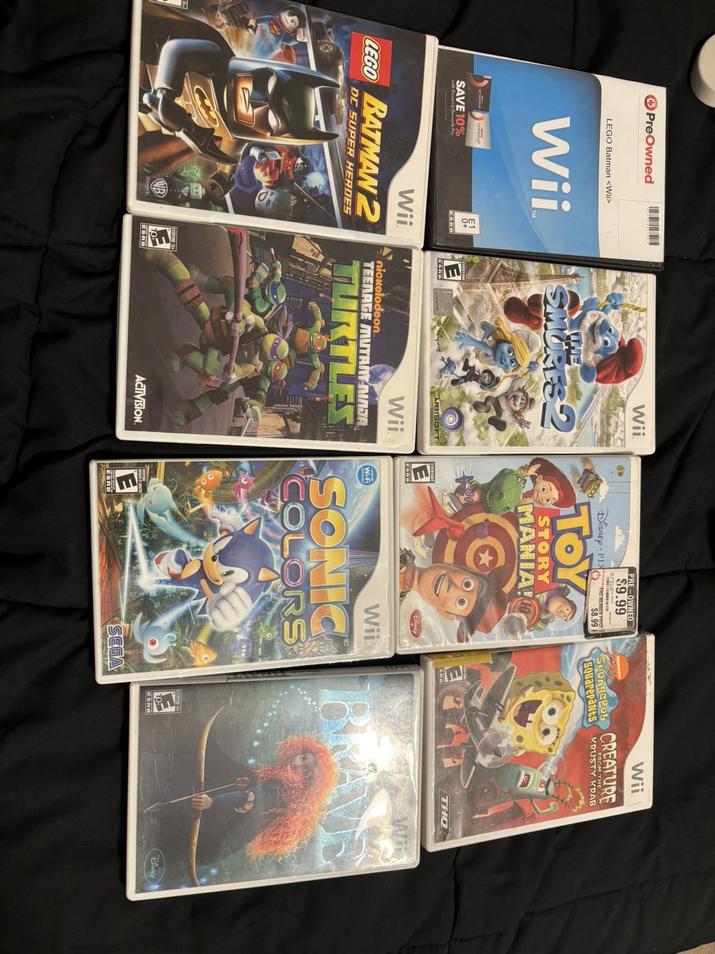 Selling a big Nintendo Wii bundle! Comes with 15 games, including fan favorites like Sonic Colors, Toy Story 3, multiple Just Dance games, LEGO Batman 2, TMNT Smash-Up, and more. Great mix of family, party, and dance games. Also included: • Wii sports attachments (golf club, tennis racket) • Zumba Fitness belt Everything is tested and works great. Perfect for family nights, collectors, or anyone looking to build a fun Wii library.
