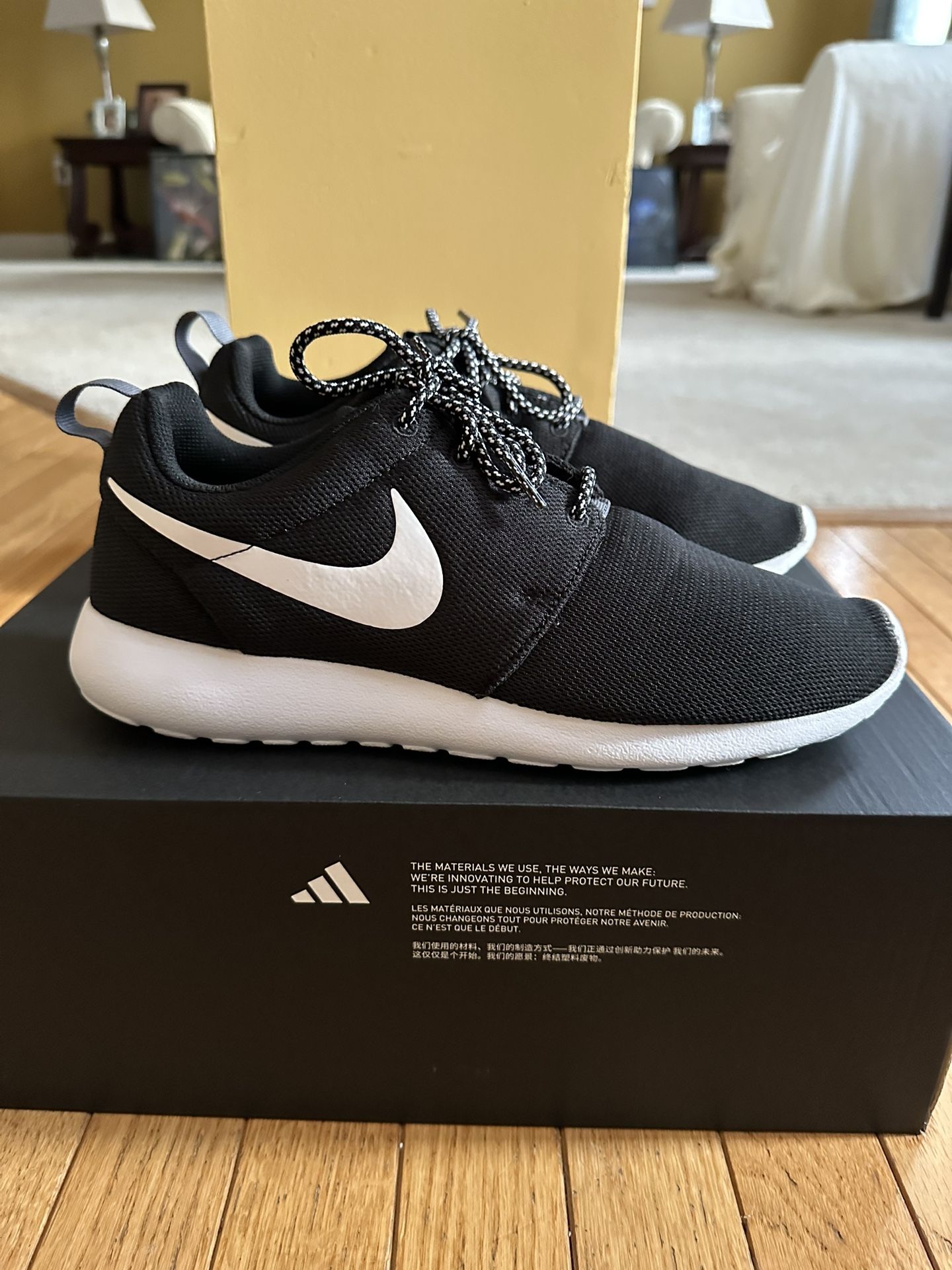 Nike Roshe One Black Men’s Size 9 / Women’s Size 10.5 Shoe is worn but in good condition and comes with replacement box Proof of authenticity in last photo Will ship with care and within 1-3 days Message with any questions