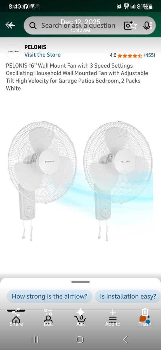 Set Of 2 Wall Mount Fans New In Box Pick Up In Pomona $50