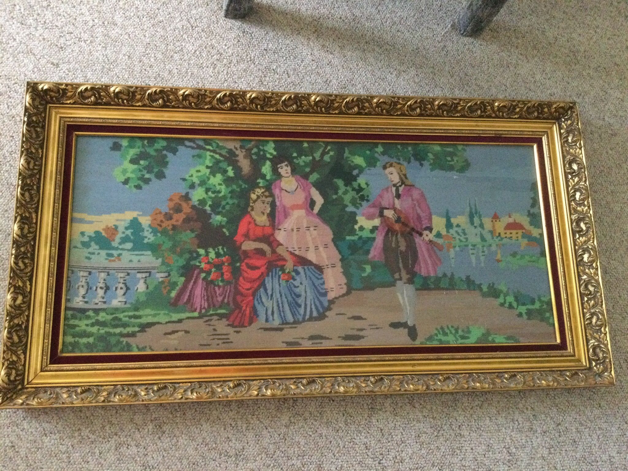 Vtg Victorian Needlepoint - 24x40 Framed - Made In Budapest