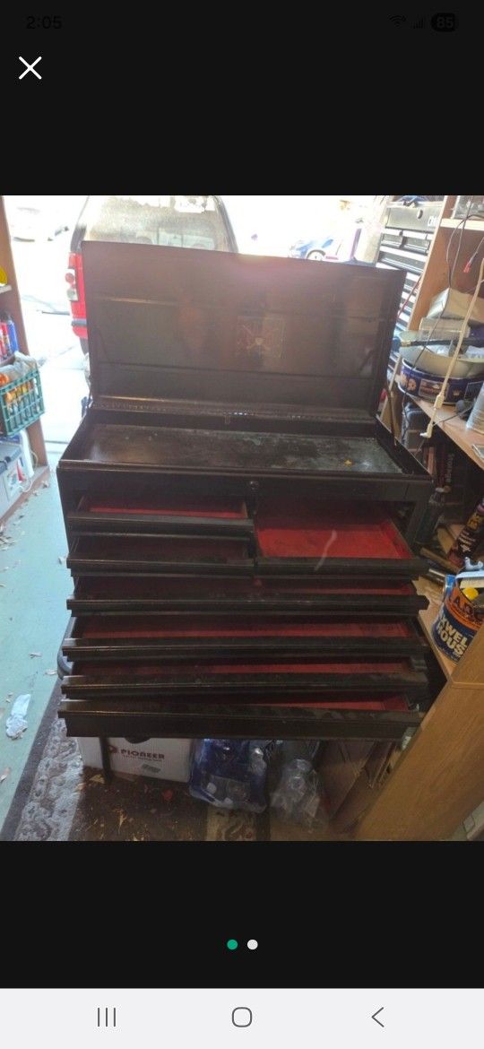 Toolbox, all drawers slide smooth. 29" wide, 13" deep