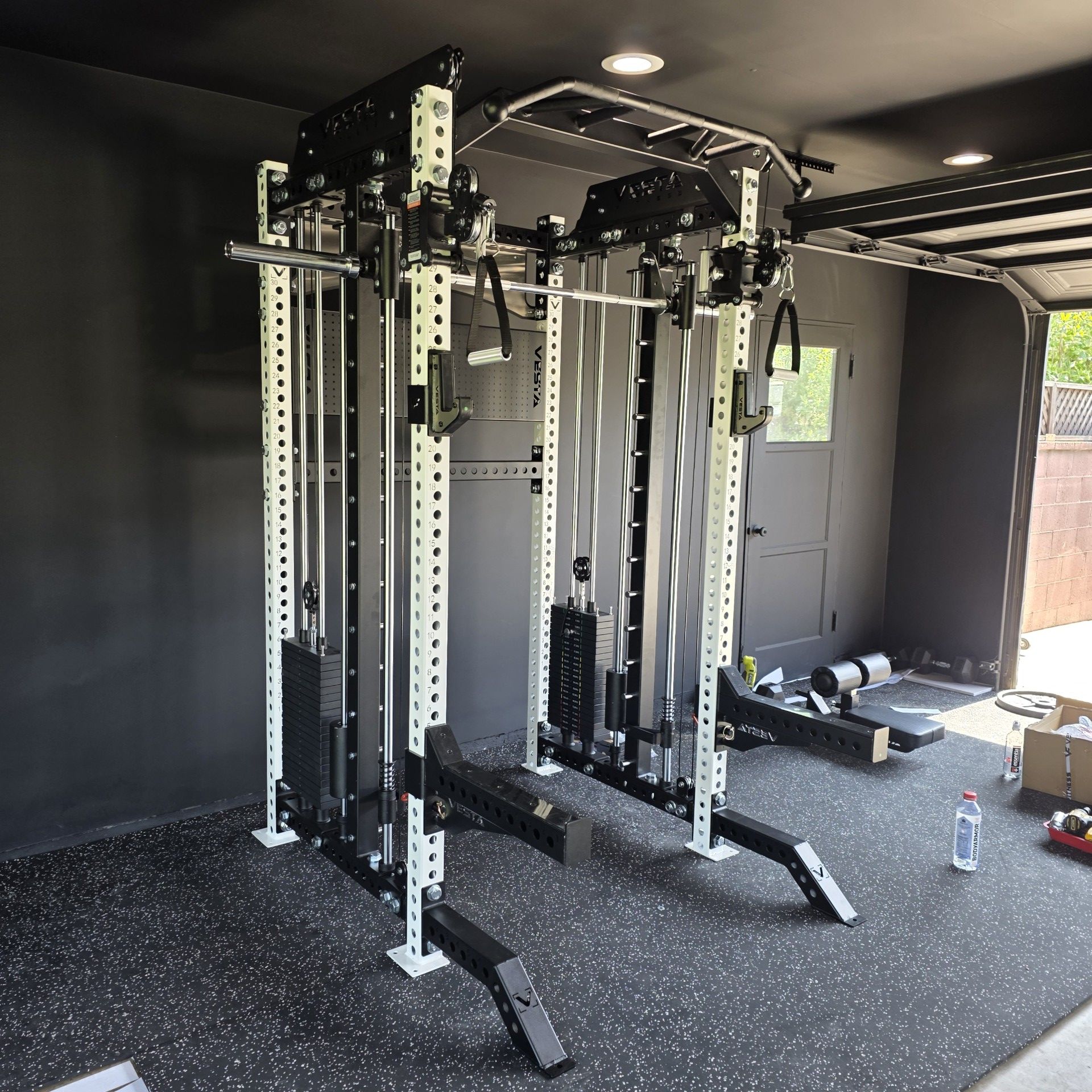 FREE DELIVERY 🚚 INSTALLATION AT EXTRA COST $$$ SHOWROOM AVAILABLE. WARRANTY INCLUDED! VIDEO AVAILABLE 🎥 [This Offer Includes] ✅️Vesta Pro Series Ultimate rack 3 in 1 0lbs Counter Balanced Front Smith Barbell | Functional Trainer | Squat Rack! 2×200lbs weight stack 🔴Weights, Barbell, and Bench, sold separately 🔴 《ATTACHMENTS INCLUDED 》 ✅️J-cups (2) ✅️Spotter Arms (2) ✅️Adjustable Pulley System 200lbs Weight stack (2) ✅️Barbell Holder(1) ✅️Pull up Bar(1) ✅️ D handles (2) ✅️45lbs Smith Barbell with safety hooks {Specifications and Construction} ●Aluminum Pulley Wheels ●11 Guage Steel ● 3x3 Uprights ● 1 inch holes ●2:1 Pulley system ratio ●Same quality as ROGUE and REP but at a better price! ●Compatible with other Company Attachments. Makes it convenient! Colors available: All Black ⚫️ Red/Black ⚫️🔴 White\Black⚫️⚪️ Clear Coat/Black🩶⚫️ 《Dimensions 》 Height: 94" or 86" Height available too Width: 80" Length: 65" {🟢Attachment Add Ons🟢} -Plate Holders pair for $65 Helps you have your weight plates organized - Dip station $140 Add a new station to your rack and you can execute many types of works out with a dip Attachment - Lat Pull Down Seat Attachment $240 Makes its easy for you to sit near upright to execute your lat pull down workouts! Highly recommend Attachment! -3 pcs lat pull down Attachment Set $100 3 different angles of lat pull downs! Very good to hit specific muscles on your lat pull down work outs! -Foot plate Attachment $88 Helps support your rows for back work outs. Nice size foot plate. Fits nice on rack and makes it comfortable to perform your workouts! - Weight Stack pin increase Attachment $80 Amazing Attachment can increase your weight stack from 200lbs up to 300lbs. With a horn that you connect to weight stack then you add weight plates manually to each side to increase weight of your pull! 🔥Bundle Deal available $4450🔥✅️Vesta Ultimate rack 3 in 1 Front Smith Counter Balanced 0 pound Smith bar ✅️Vesta Ab4000 Flat | Incline | Decline ✅️260lbs Bumper Weights 45s/35s/25s/15s/10s ✅️7Ft 45lbs Olympic Barbell w/ Collars and foam pad 🚛FREE DELIVERY🚛 NEED More Pictures or intrested in more gym equipment shoot me a message! I can Help you Build Your Home Gym!