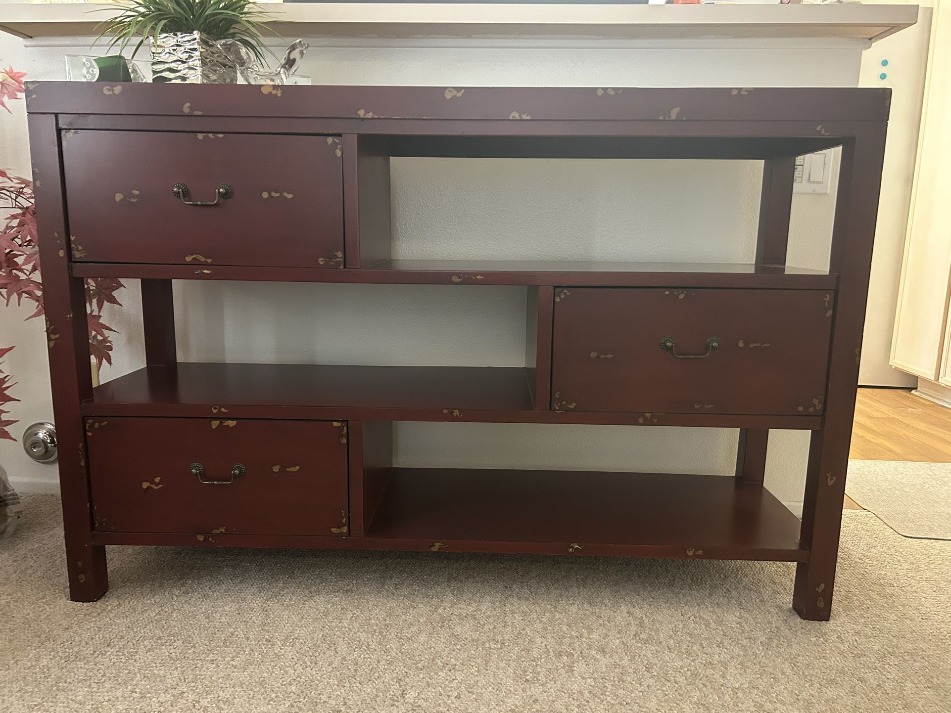 Great for entertaining 56x16x37 Wine color/gold accents 3 drawers