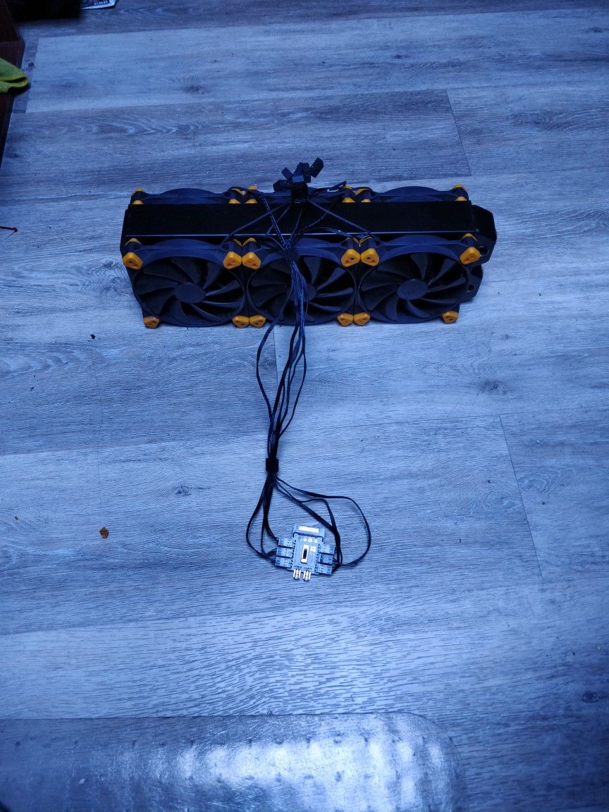 Water cooling radiator with G1/4 threaded holes 3 x 120mm fans on each side 6 fans total Excellent heat dissipation Full copper radiator 8-fan SATA header Fans with speed control Fan hub with speed control 4 speeds total, can be absolutely silent Both fans and the radiator are high quality expensive parts PC, CPU, GPU, computer, tower, ATX, mITX, gaming, water cooler, reservoir, tank, hose Barb, fitting