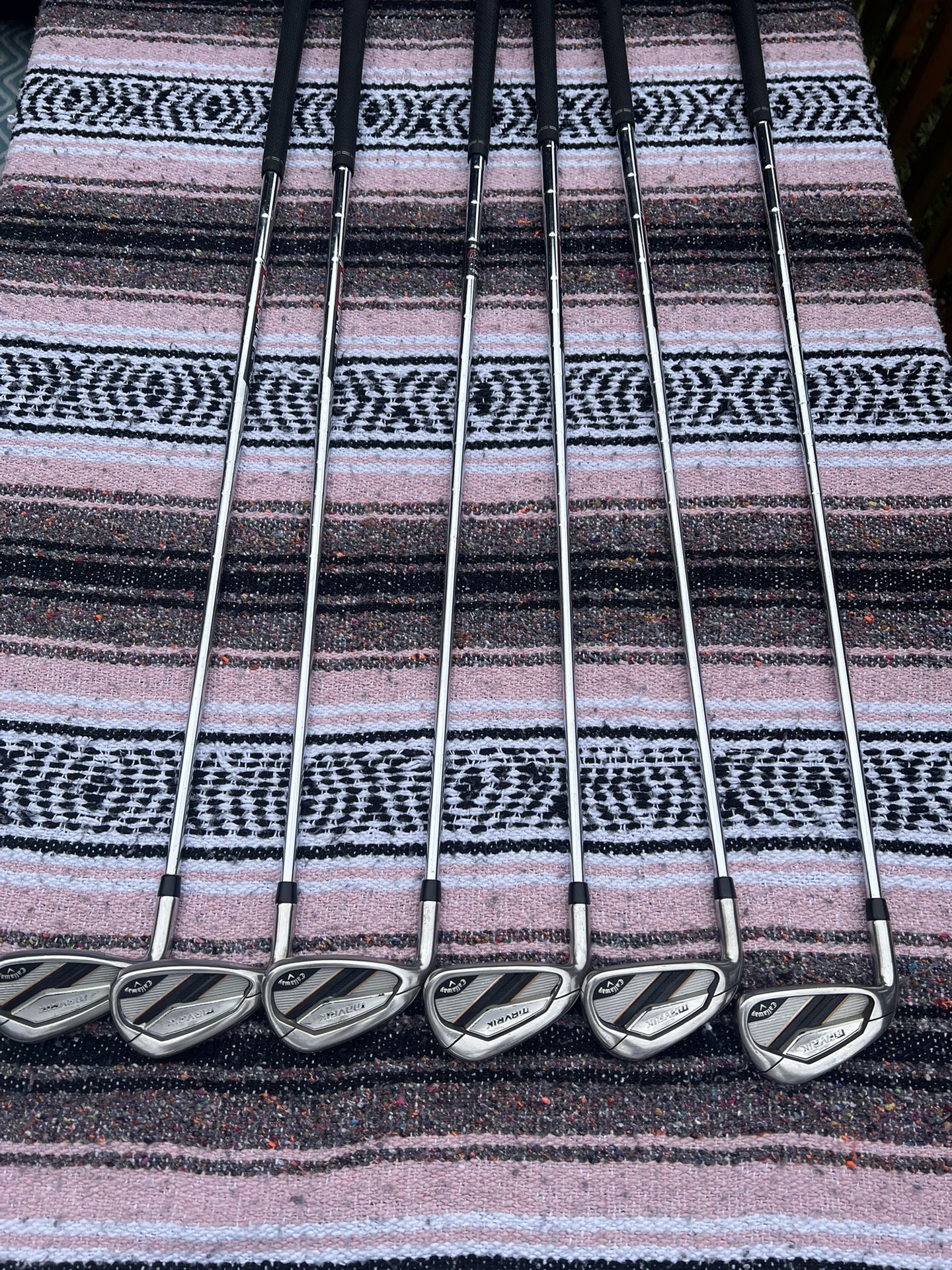 Left handed irons and woods. Had this set for around 3 years. Great game improvement irons. I recently upgraded to a newer Callaway set and have no need for these anymore. They have some wear but still solid. The Taylormade M-6 woods, have served me well for the past few years, but I believe them when they tell me that the new tech will improve my game…so I had to upgrade. Callaway Mavrik Irons 5i-PW Steel Shaft Taylormade M6 Driver Shaft-Fujikura 5R-Flex Atmos Taylormade M6 3 Wood Shaft-Diamana 60 x5ct Lite Taylormade 4 Hybrid Shaft-Tensei CK Series 70HY Flex-R