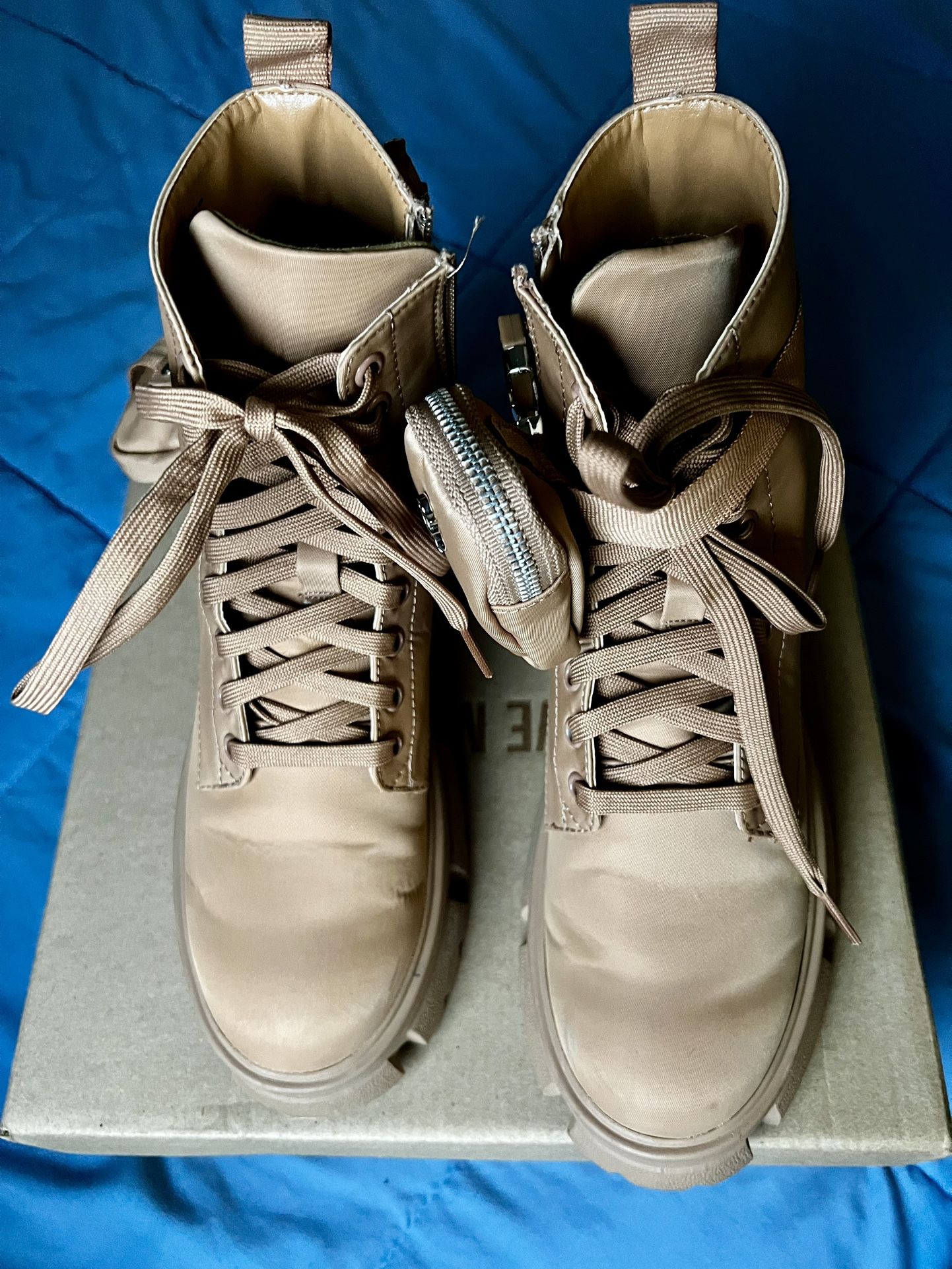 Steve Madden Women's Tanker-P Mega-Lug Lace-Up Combat Booties Color: Tan Size: 8M