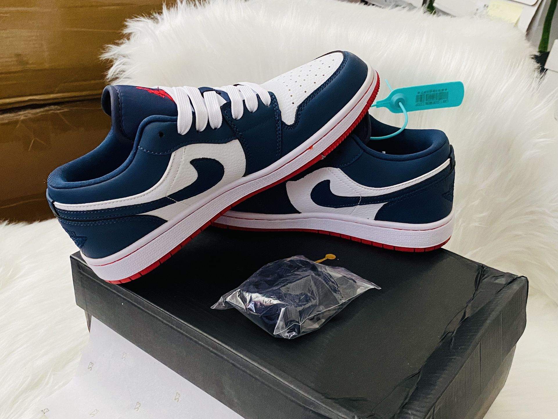 Step up your sneaker game with these Air Jordan 1 Low “White/Navy/Red” shoes — a clean and timeless colorway featuring smooth leather uppers, cushioned insoles, and the iconic Jumpman logo. Perfect for everyday wear, street style, or collectors who love retro Jordan designs. Details: • Brand: Nike Air Jordan 1 Low • Colorway: White / Navy Blue / Red • Style: Retro Basketball Low Sneaker • Condition: Brand New, Never Worn • Includes: Extra navy laces (sealed in bag) • Gender: Men’s (Unisex style) • Size: [Insert size] Why You’ll Love Them: ✔️ Comfortable full-length Air cushioning ✔️ Premium leather upper ✔️ Classic low-top Jordan style that matches any outfit #Jordan1Low #AirJordan1 #SneakerHead #NikeShoes #StreetwearFashion #KicksDaily #JordanStyle #MensFashion #NextKick #NSShoesHub #WalkYourWay